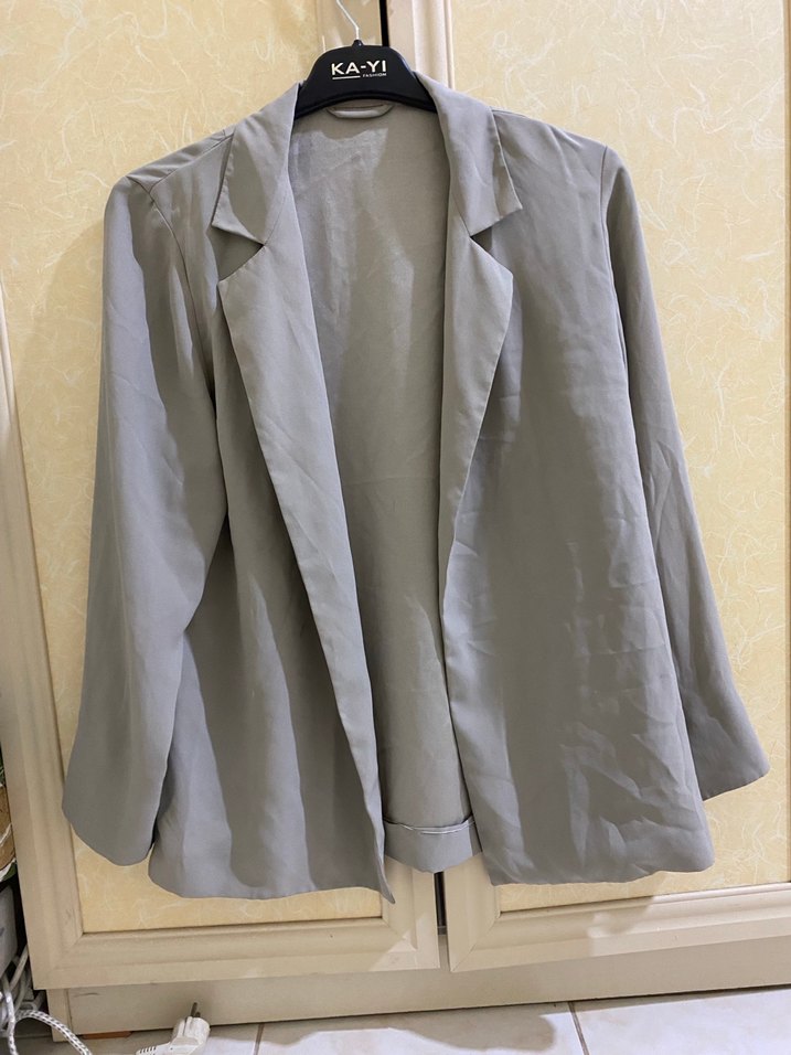 Gri Kadın Keten Ceket Düğmeli