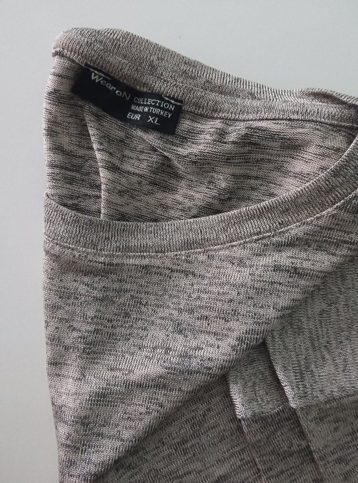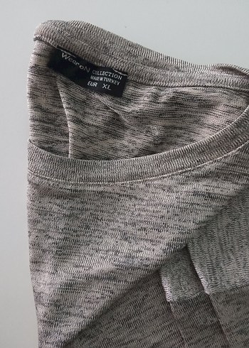 Gri kumaştan, yuvarlak yakalı, yarım kollu ve salaş kesim kadın badi. Günlük ve sokak stiline uygun rahat bir parça.