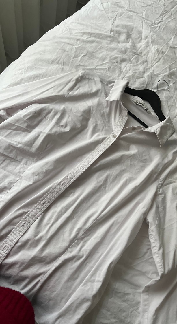 Kadın keten gömlek, bol kesim, uzun kollu, yakalı ve düğmeli. Yumuşak keten kumaştan, gri renkte, minimalist ve sokak tarzında midi boyda, günlük kullanım için uygun.