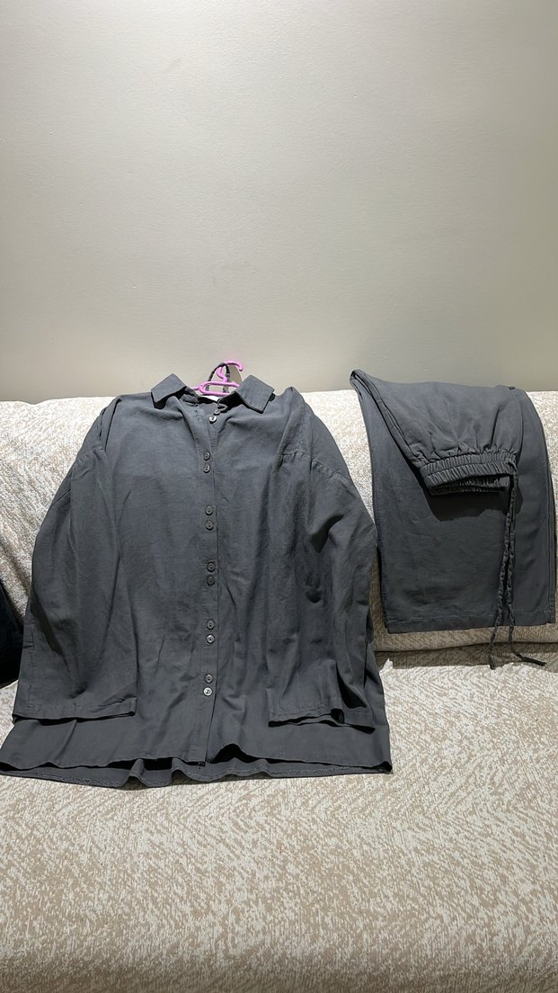 Gri renkte, keten kumaştan üretilmiş, düğmeli ve rahat kesime sahip kadın gömleği. Uzun kollu ve notched lapel yakalı, midi boyda, gündelik kullanıma uygun.