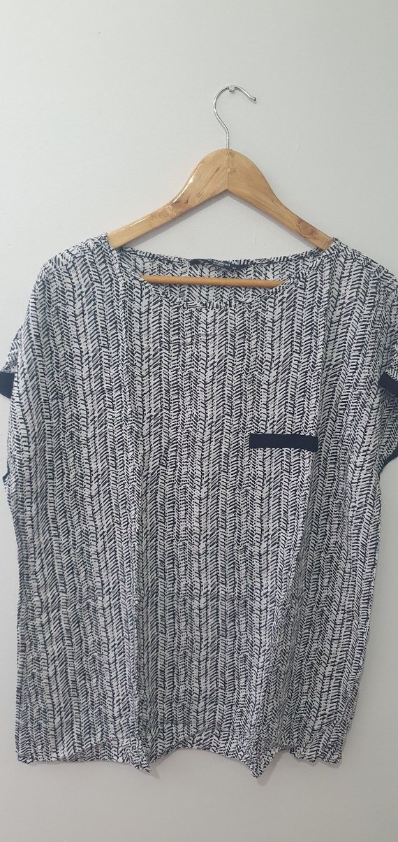 Gri renkli, örgü desenli, kısa kollu ve yuvarlak yakalı bu bluz, rahat kesimi ve midi boyuyla günlük sokak stiline uygundur. Küçük cep detayı bulunur.