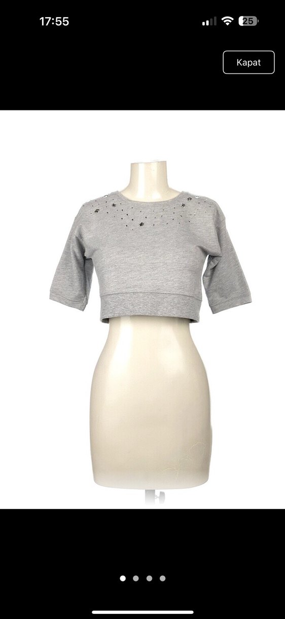 Gri renkli, yuvarlak yakalı ve kısa kollu kadın crop top. Pamuklu kumaştan, rahat ve şık, günlük kullanıma uygun.