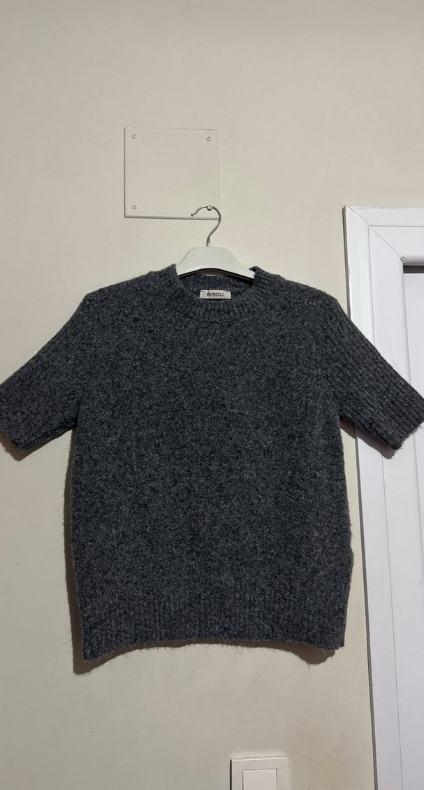 Gri renkli, kısa kollu, örgü yapıda yün kazak. Yuvarlak yakalı ve bol kesimdir, günlük rahat kullanım için uygundur. Midi boy ve sade tasarıma sahiptir.