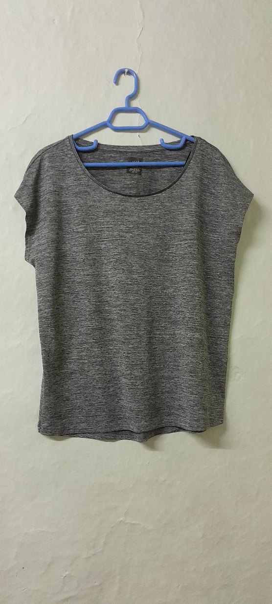 Gri renkte, yuvarlak yakalı ve kısa kollu kadın tişörtü. Sentetik kumaştan, salaş kesim ve desensiz. Günlük kullanıma uygun, rahat ve şık bir parça.