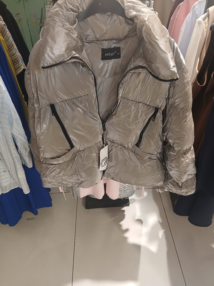 Bu dar kesim kısa uzunlukta kadın mont, keskin yakalı ve fermuarlı ceplidir. Sentetik kumaştan yapılmış, günlük kullanım ve sokak stili için uygundur.