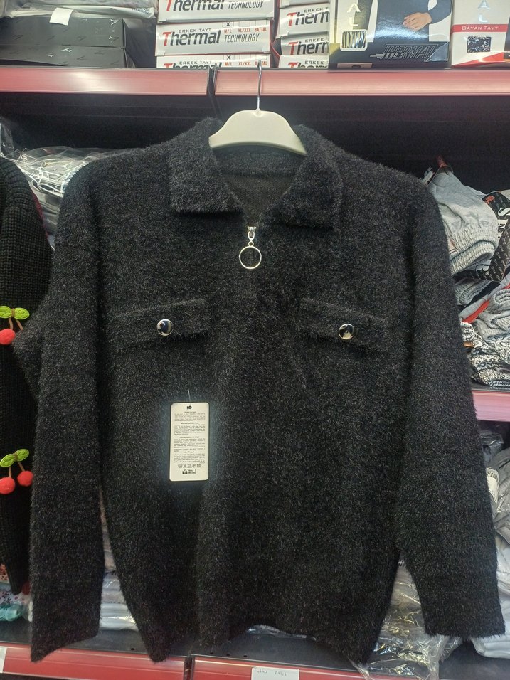Gri renkli yün kazak, uzun kollu ve yuvarlak yakalıdır. Örgü dokusu ve kısa kesimiyle rahat sokak stili sunar. Düz desensiz, ön fermuar ve cepler bulunur. Termal özelliktedir. RENK VE BEDENLER MEVCUTTUR.
