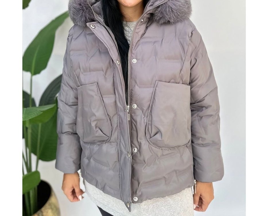 Gri Kadın Kışlık Kürklü Mont