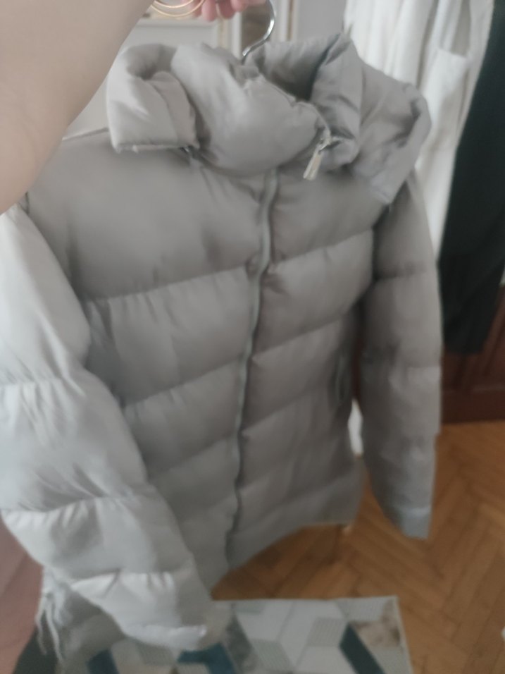 Gri renkte, yüksek yakalı ve düğmeli, normal midi uzunlukta kadın kışlık mont. Yumuşak sentetik kumaştan, rahat sokak stili için uygundur. 3 ay kullandım yenisini aldığımı için satıyorum ❄️