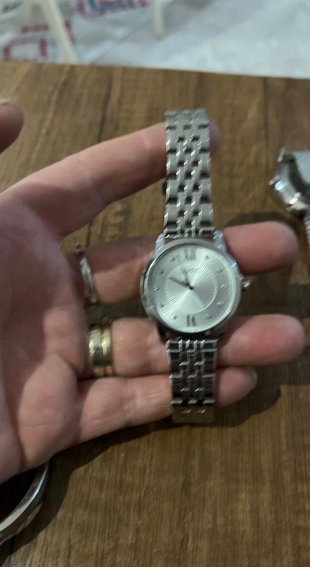 Gri metal kayışlı, tokalı, minimalist yuvarlak kadranlı kadın kol saati. Çağdaş ve zamansız bir tasarıma sahiptir. ⌚