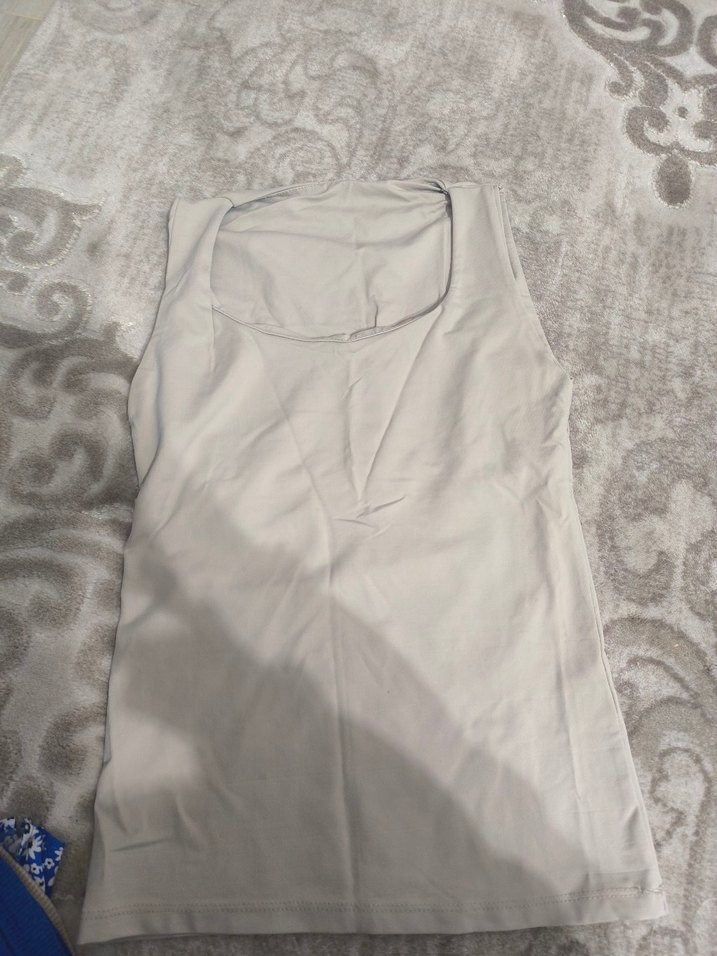 Gri renkte, kolsuz ve tek renk kadın bluz, rahat ve hafif linen kumaştan. Minimalist ve normcore tarzıyla günlük kullanıma uygun.