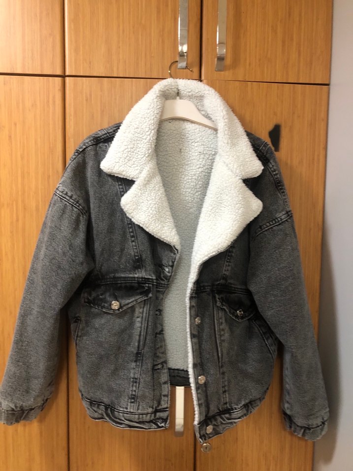 Yumuşak kürk astarlı, gri kot ceket. Temiz kullanılmış defosu yok