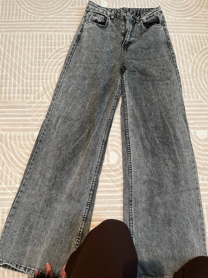 Gri denim kumaştan, rahat kesim kadın kot pantolon. Günlük kullanıma uygun şehir stilinde.