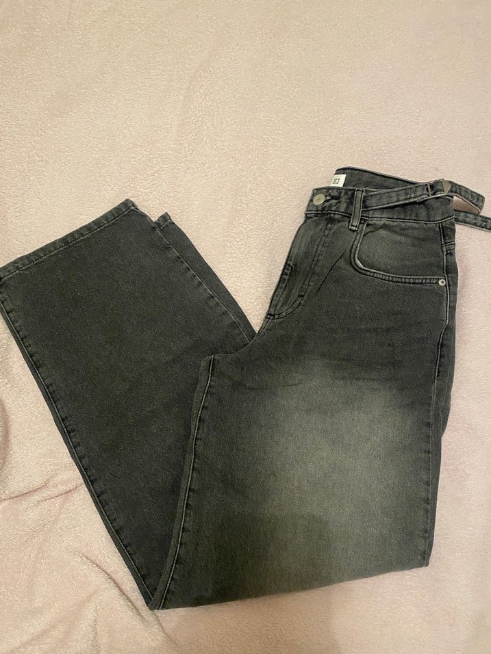 Gri renkte, kemerli ve regular fit kesime sahip kadın kot pantolon. Üç kere giydim kilo aldığım icin satıyorum sorunsuz pb yeni sezon