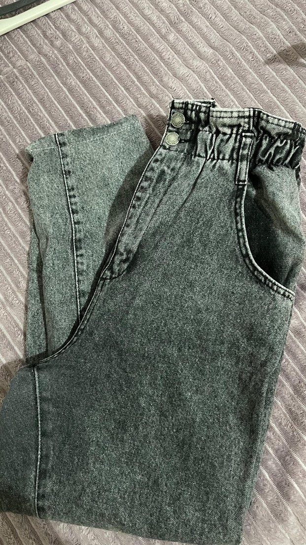 Gri Kadın Kot Pantolon Kemerli Salaş Kesim