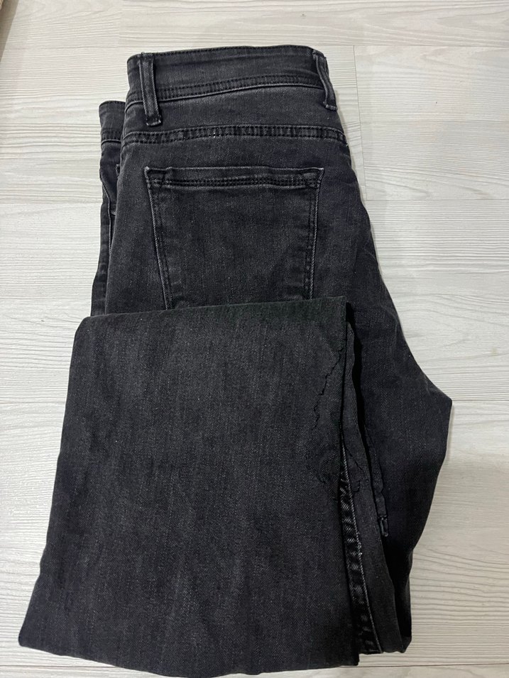 Gri renkli, regular fit, normal boy kadın kot pantolon. Kemerli detayıyla günlük rahat sokak stiline uygundur.