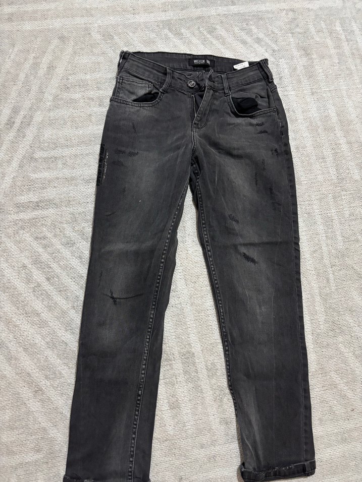 Gri Kadın Kot Pantolon Tokalı