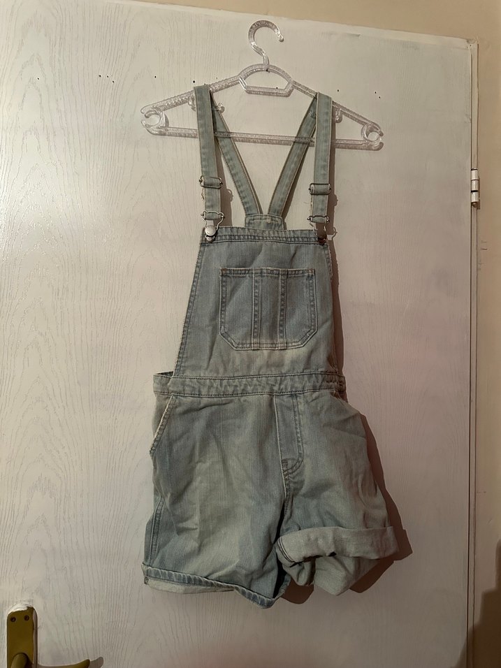 Gri Kadın Kot Şort Tulum