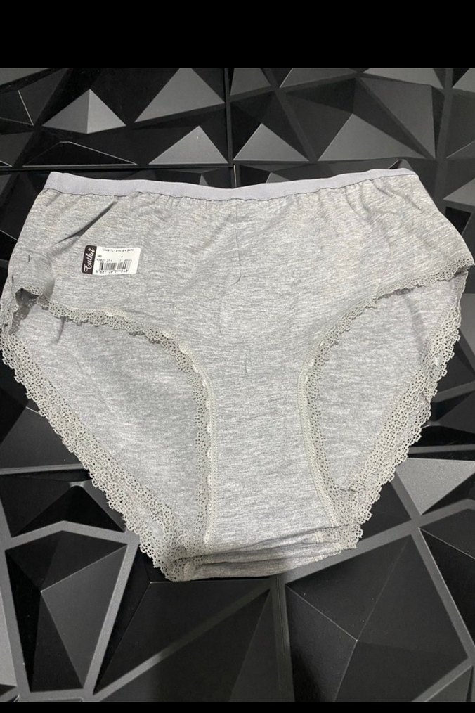 Gri renkte, kenarları dantel detaylı, kısa boy kadın külot. Yumuşak kumaşıyla rahat kullanım sağlar.