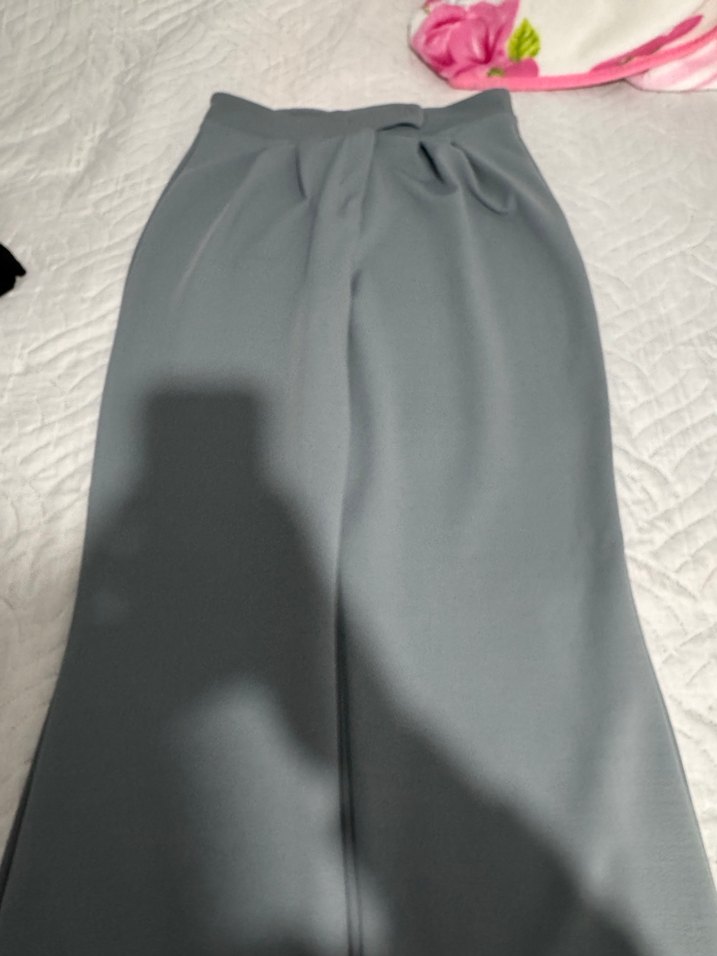 Çıtçıtlı gri kumaş pantolon