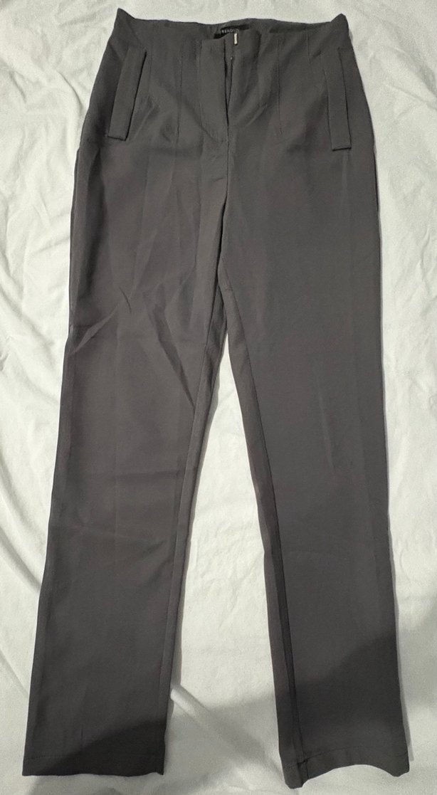 Gri, regular fit, kadın kumaş pantolon. Midi boy, desen içermeyen ve ofis stiline uygun. Yumuşak sentetik kumaştan üretilmiştir.