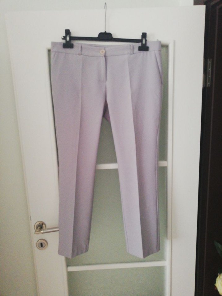 Gri renkli kadın kumaş pantolon, regular fit ve midi boyda, yumuşak sentetik kumaştan üretilmiştir. Ofis için sade ve şık bir tarz sunar. 42 beden olarak düşünebilirsiniz.