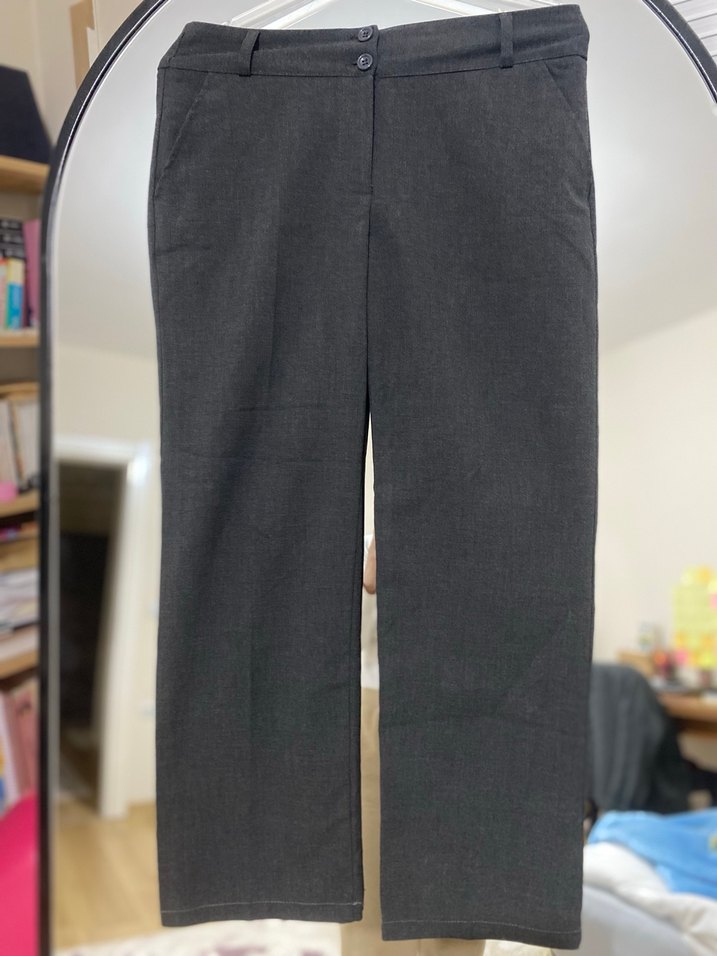 Gri kadın kumaş pantolon, boyu kısaltıldı düşük bel 1 kez giyildi