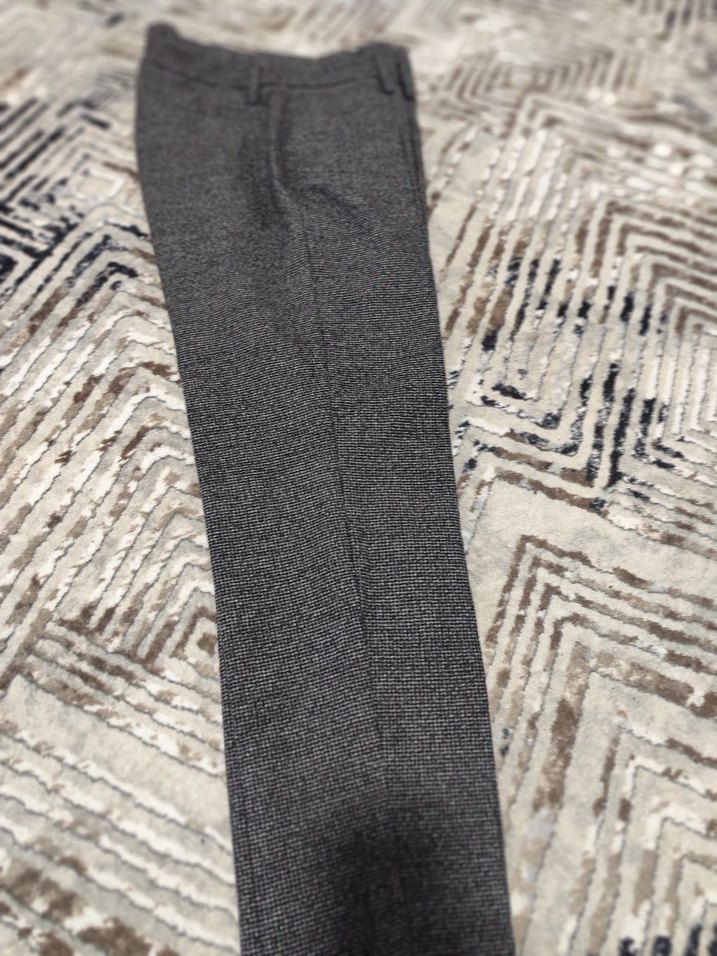 Gri renkte, ı, düz desenli kadın kumaş pantolon. Rahat kesimi ve midi boyu ile günlük sokak stiline uygundur. kışlık kalın kumas