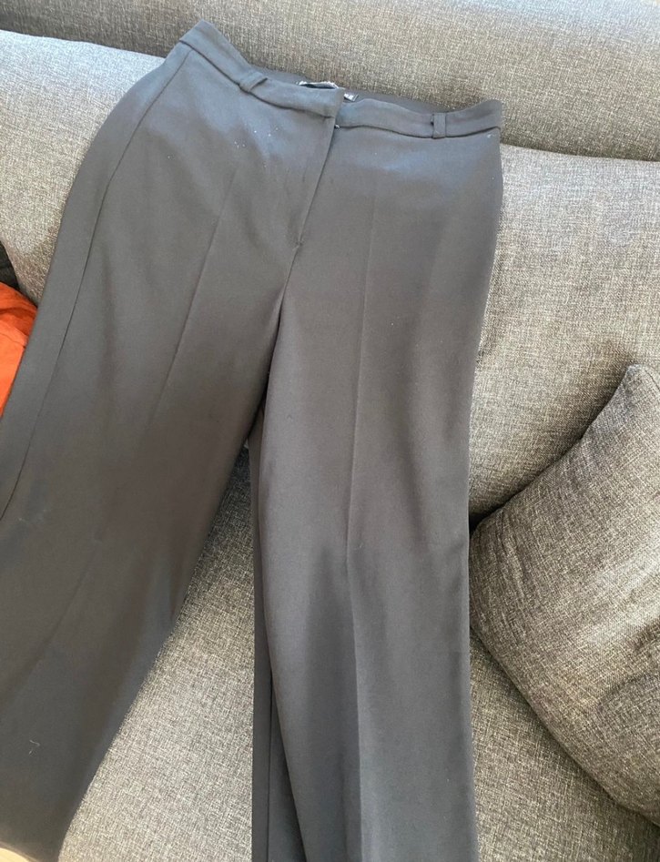 Gri kadın kumaş pantolon, normal boy Ofis stiline uygun, desensiz sade tasarım. Bol paça more moss marka yeni hiç giyilmedi 36 beden siyah