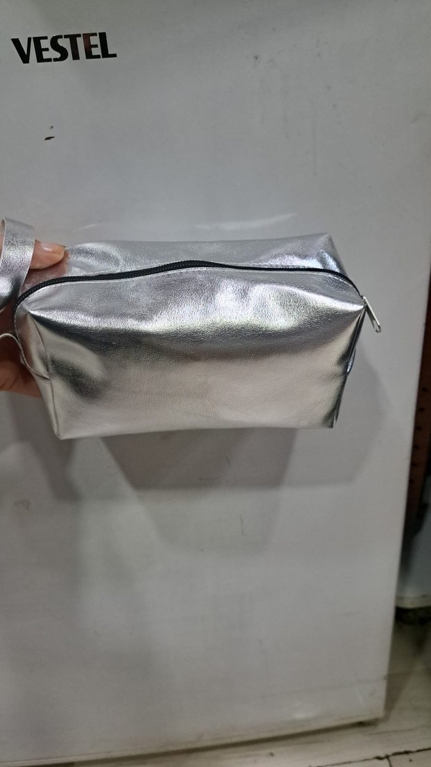 Gri makyaj çantası, fermuarlı kapanışa sahip, minimalist tasarımlı ve günlük kullanım için uygundur. 0 mağaza ürünüdür