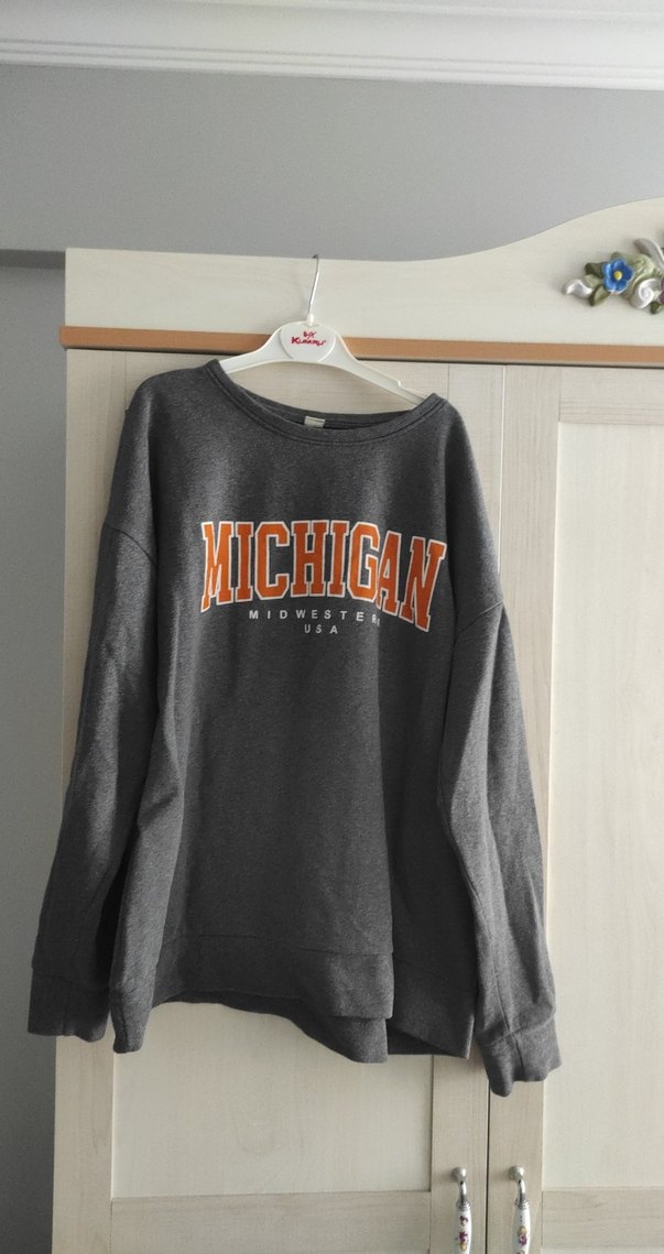 Gri renkte, uzun kollu, bisiklet yaka ve rahat kesime sahip sweatshirt. Önünde 'MICHIGAN' baskısı bulunur. Günlük kullanıma uygun, sıcak ve rahat kumaştan.
