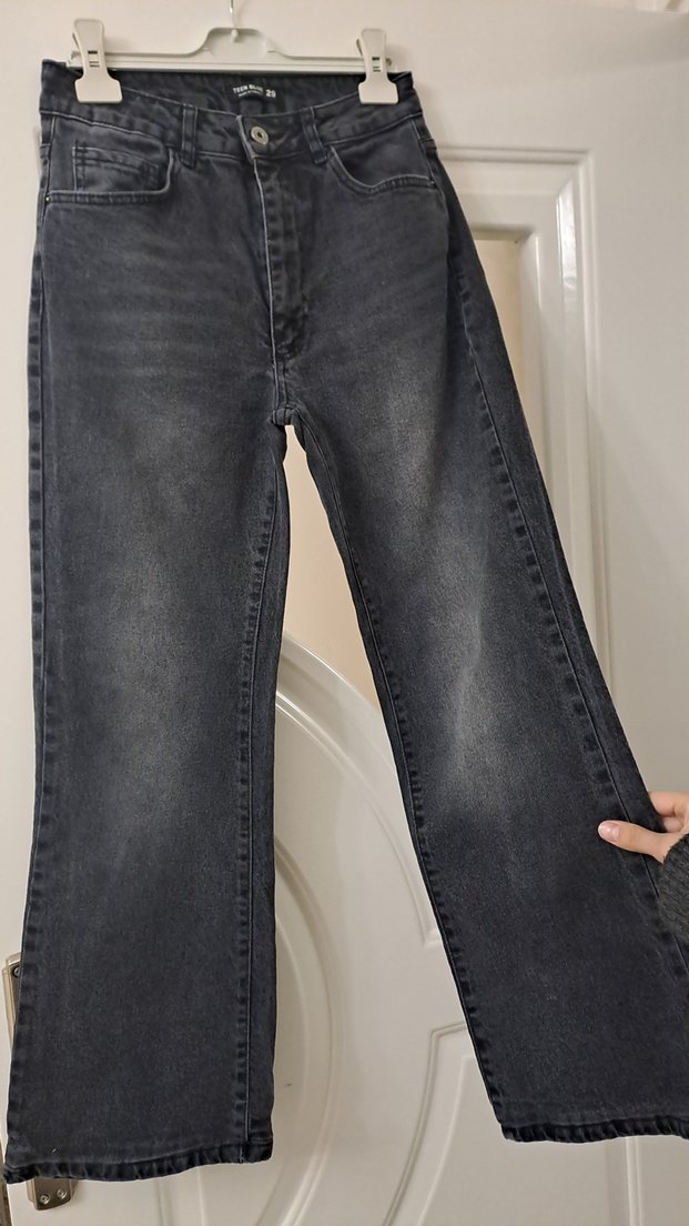 Gri renkte, regular fit ve midi boy kadın denim pantolon. Desensiz, normcore tarzıyla günlük kullanıma uygun rahat ve şık bir seçenek.