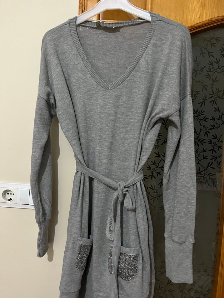 Gri renkte, uzun kollu, rahat kesim kadın bornozu. Midi boyda, V yaka ve kemerli. Ceplerde hafif süslemeler bulunur. Rahat kullanım için uygundur. ️