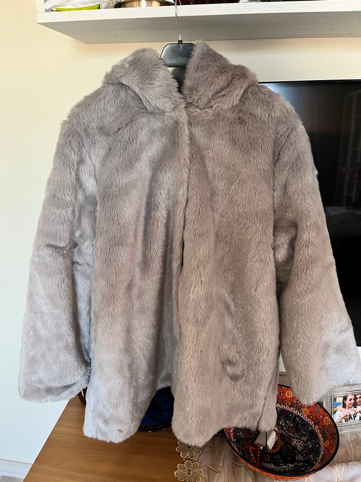 Gri Kadın Midi Boy Suni Kürk Ceket