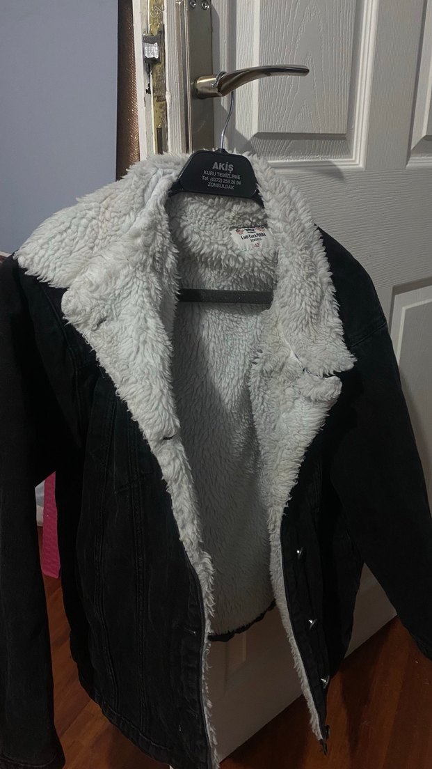 Gri renkli, kürklü detaylı, yumuşak ve sıcak kumaşlı, uzun kollu, normal boyda, sokak stili kadın ceketi. Yıkanması gerek sadece