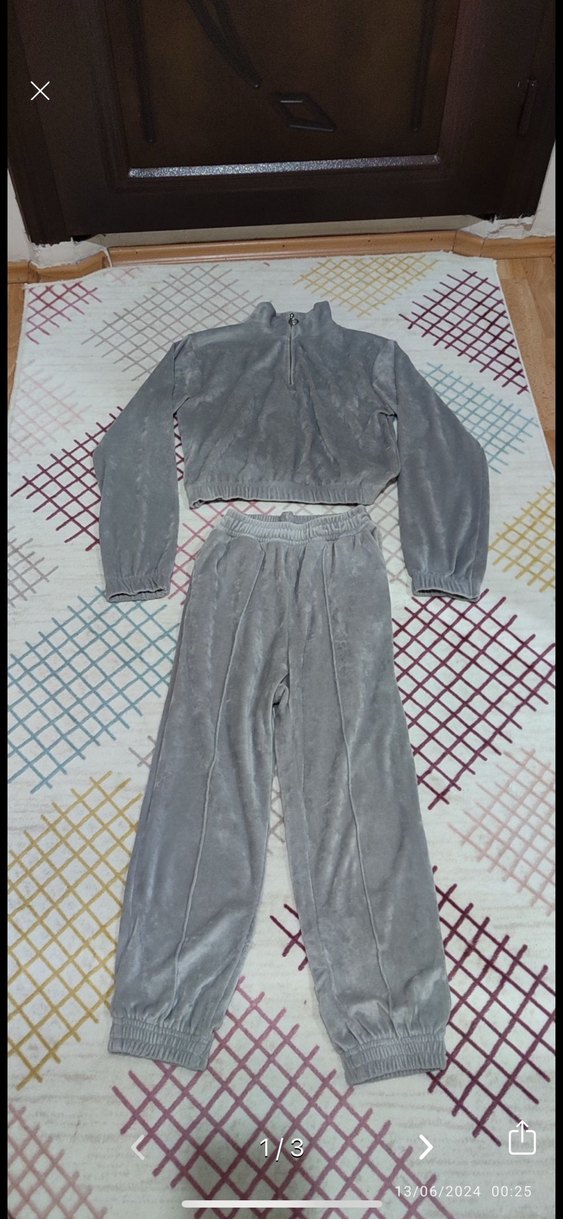 Gri renkte, uzun kollu, yüksek yakalı ve rahat kesim kadın eşofman takımı. Yumuşak ve sıcak kumaştan, günlük kullanıma uygun rahat ve şık bir set.