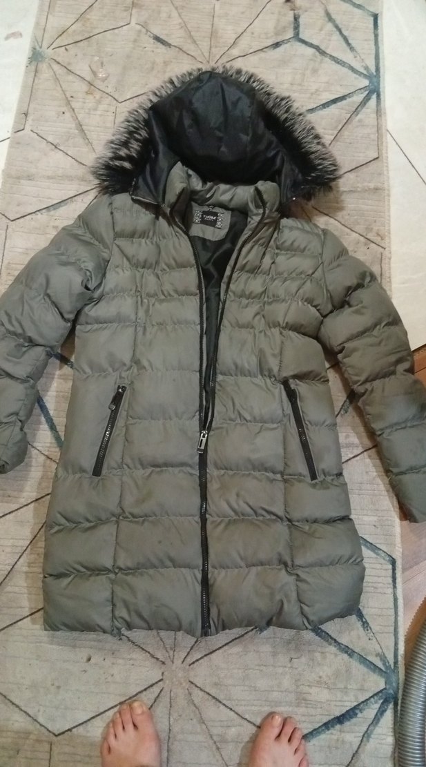 Gri renk, kürklü kapüşonlu ve uzun kollu, yumuşak ve sıcak tutan fleece kumaştan yapılmış, günlük kullanıma uygun, rahat ve şık midi kaban.