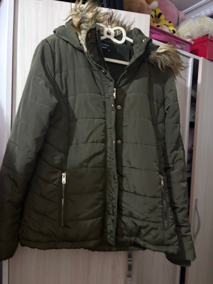 Gri, kürklü kapüşonlu ve çıtçıtlı, uzun kollu, normal midi boyda kadına özel rahat kesim kışlık mont. Sokak stiline uygun, günlük kullanıma ideal. ❄️