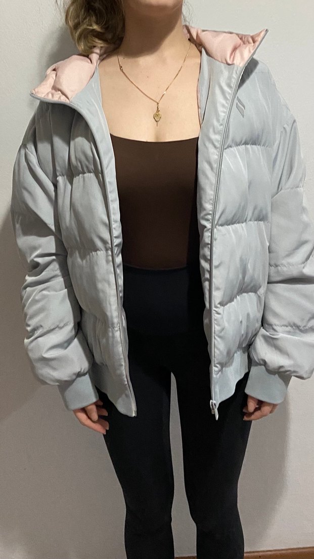 Gri renkli, yüksek yakalı ve uzun kollu kadın kışlık mont. Midi boy ve düz deseniyle rahat ve şık bir görünüm sağlar. Günlük kullanım için uygun, spor tarzda.