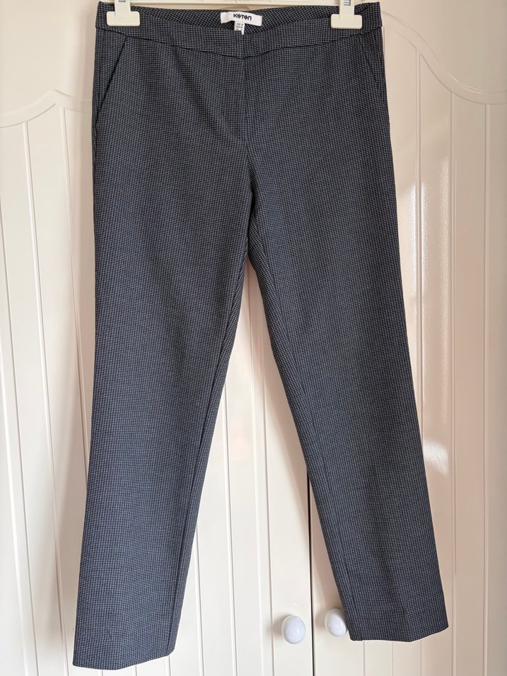 Gri renkli midi boy kot pantolon, regular fit kesim ve pile detayları ile ofis ve günlük iş ortamları için uygundur. Desensiz, trend normcore tarzda.