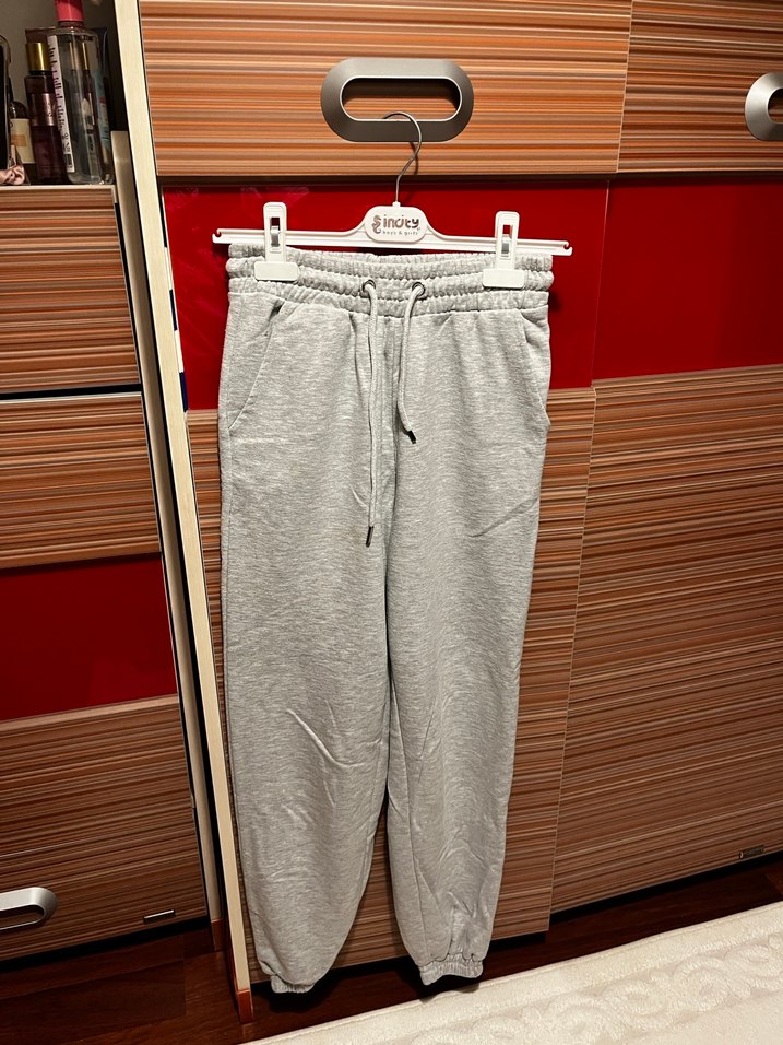 Yumuşak ve sıcak kumaştan, rahat kesim gri midi sweatpants. Lastikli bel ve yan ceplere sahiptir. Spor ve günlük sokak stiline uygundur. Giymedigim için satıyorum çok az giyildi