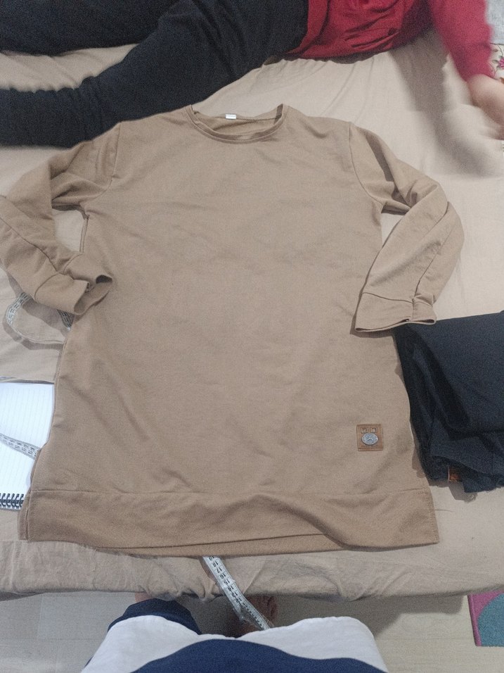 Kadınlar için, bol kesim ve midi uzunlukta, uzun kollu ve bisiklet yaka bir sweatshirt. Yumuşak keten kumaştan yapılmış, gündelik sokak tarzı gri tonunda. Günlük kullanım için rahat ve şık.