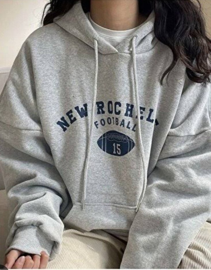 Gri Kadın New Rochelle Yazılı Kapüşonlu