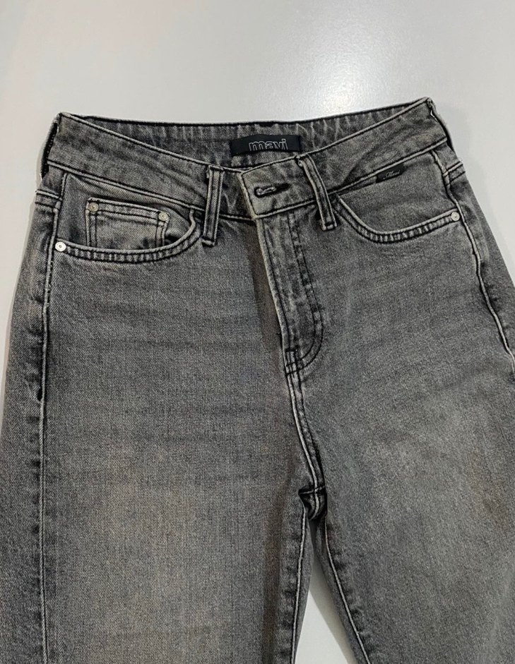 Gri denim kumaştan, normal kesim ve midi boyda kadın kot pantolon. Günlük kullanım için sade ve şık bir tasarıma sahiptir.