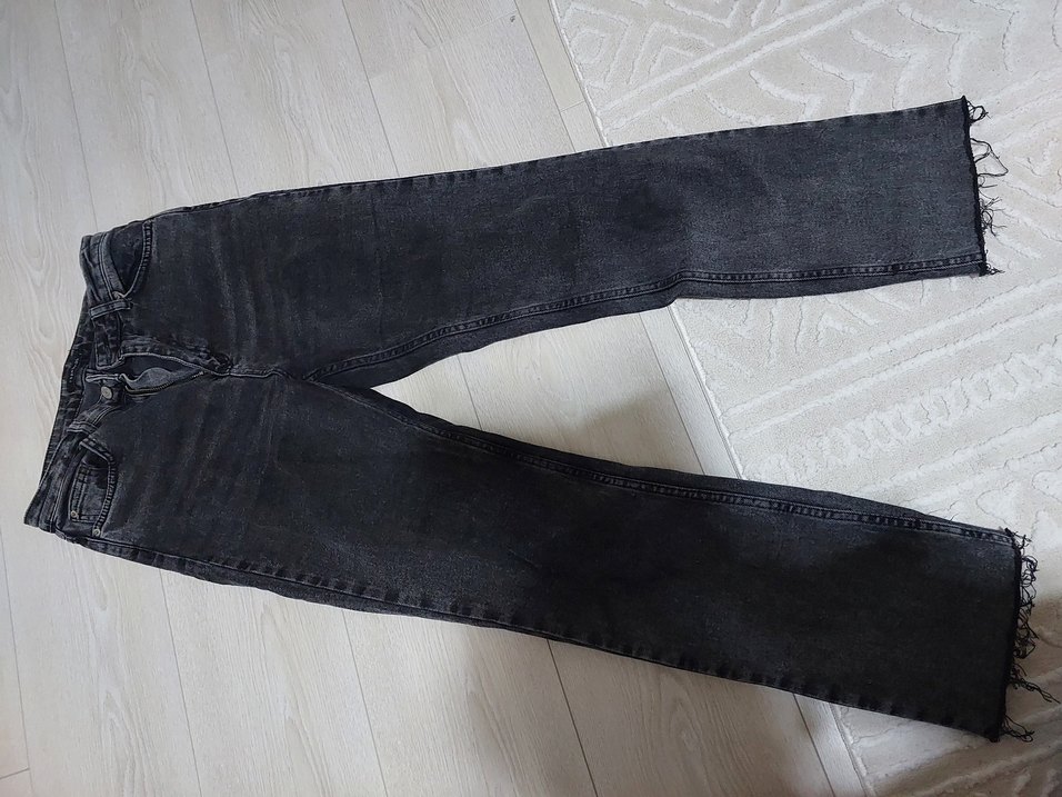 Gri renk, dar kesim denim kot pantolon, tokalı detaylı, midi boy, sokak stiline uygun, günlük kullanıma uygun.