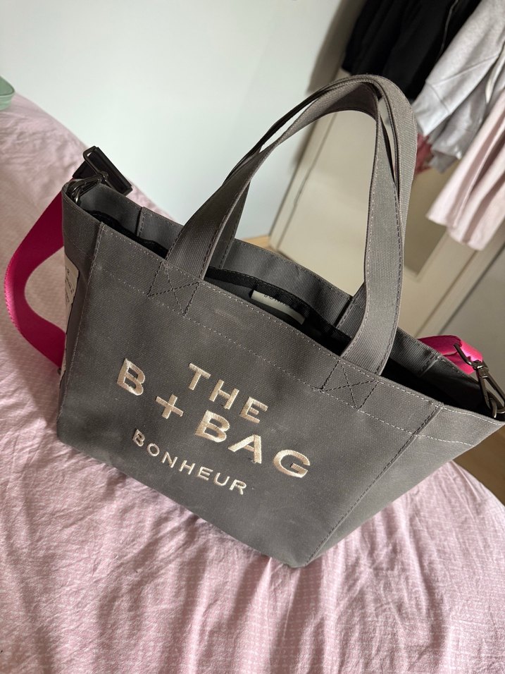 Sentetik kumaştan yapılmış, baskılı ve tokalı gri kadın omuz çantası. Üzerinde 'THE B+ BAG' yazısı bulunur, trend ve rahat bir tarza uygundur. İthal orjinaldir.