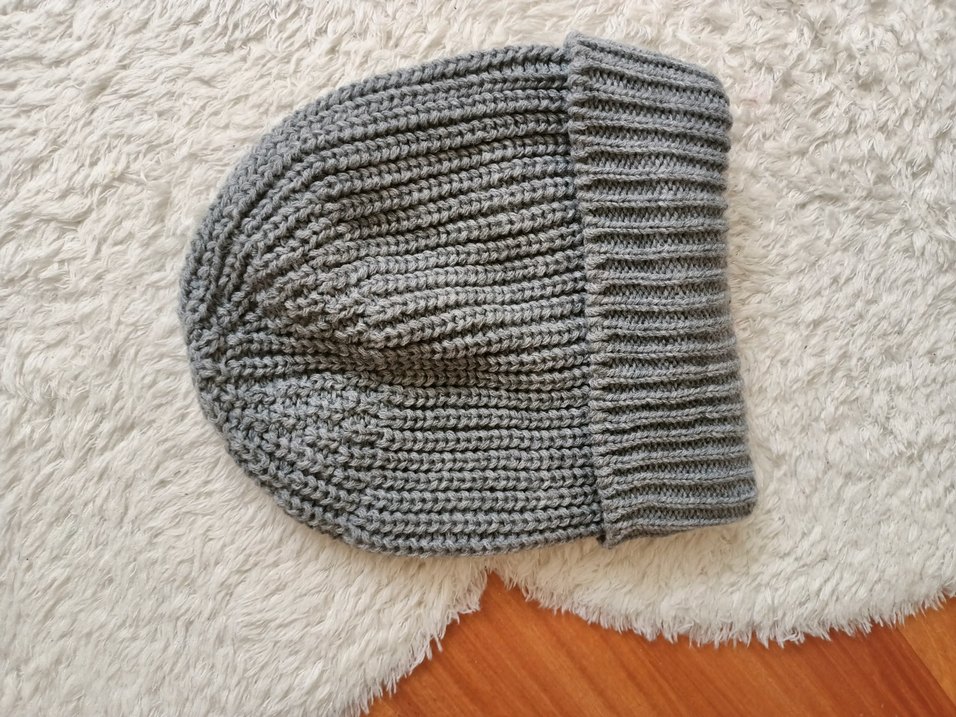 Gri renkte, örgü dokulu kadın bere, sade ve rahat bir tarz sunar, günlük kullanıma uygundur.