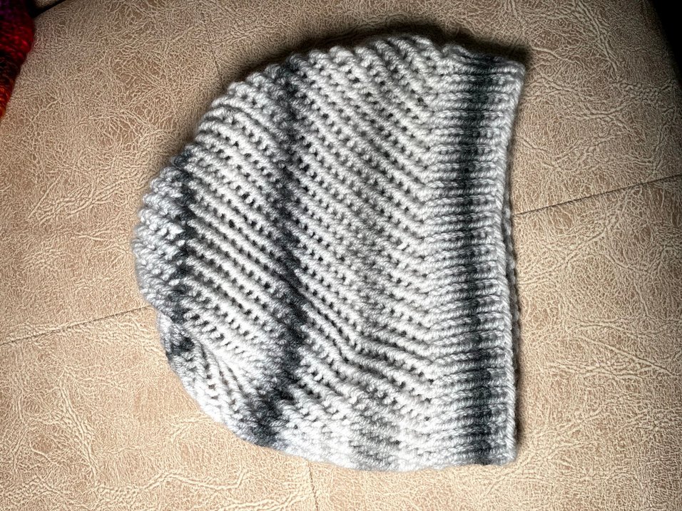 Gri renkte, yumuşak örgü kumaştan yapılmış kadın bere, rahat ve sade bir tarz sunar. El örgüsüdür.