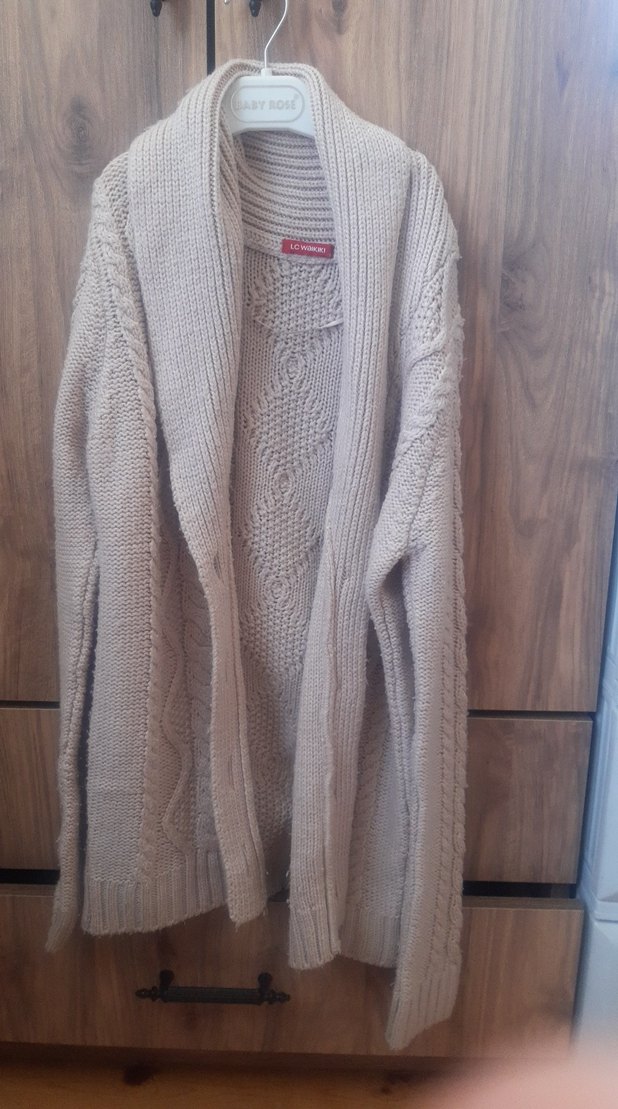 Gri renkte, örgü dokulu, uzun kollu ve midi boyda kadın hırkasıdır. Salaş kesimi ve bisiklet yakası ile rahat bir kullanıma uygundur. s beden