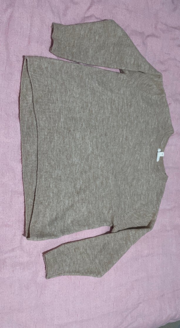 Gri renkli, uzun kollu, yuvarlak yakalı örgü yün kazak. Rahat ve bol kesimiyle günlük kullanıma uygundur. Oversize