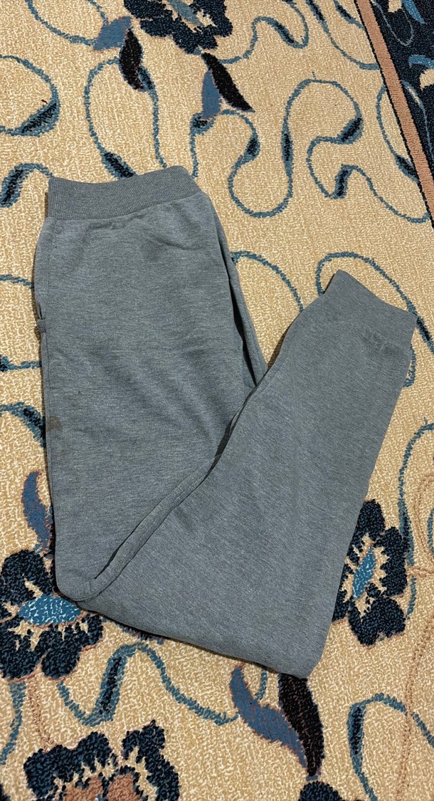 Gri renkte, örme sentetik kumaştan yapılmış, rahat kesim kadın eşofman. Normal midi boyda, günlük ve sokak stili için uygundur.